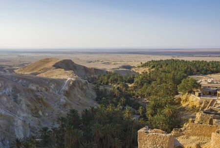 View from the mountains in the Chebika oasis, Sahara Desert, Tunisia