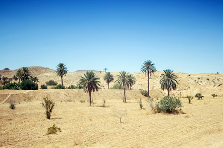 View in a desert city in the middle of the desert in Tunisia