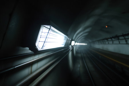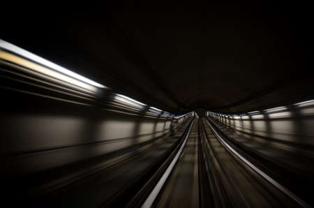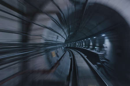 Metro subway of Turin (Italy), motion blur of a dark tunnel seen from the running rain