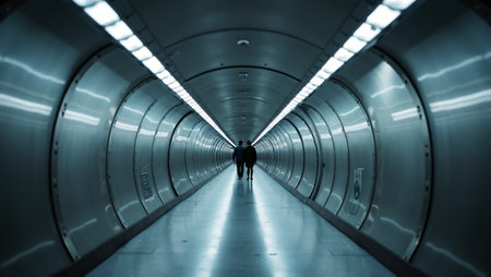 A person in a red jacket standing in a tunnel. Generative AI image.