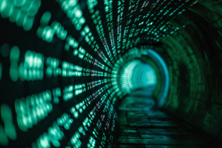 AI Generated. A brightly lit and colorful tunnel perspective view