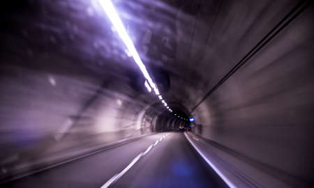 The photo shows a car driving through a tunnel. The car is blurred, and the tunnel is in focus. The photo is taken from the perspective of the driver.