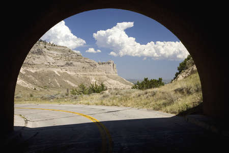 A view of Scotts Bluff National Monument through tunnel, Scottsbluff, Nebraska