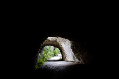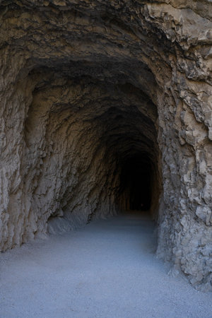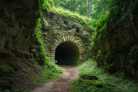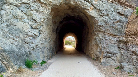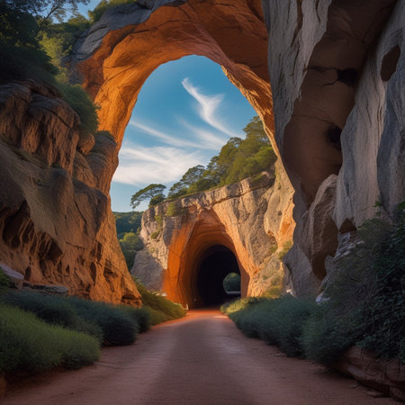 A captivating view of a beautifully carved tunnel through stunning rocky terrain, showcasing natural beauty