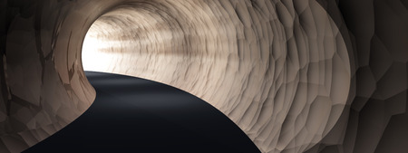 Conceptual dark abstract road tunnel with bright light at the end background banner