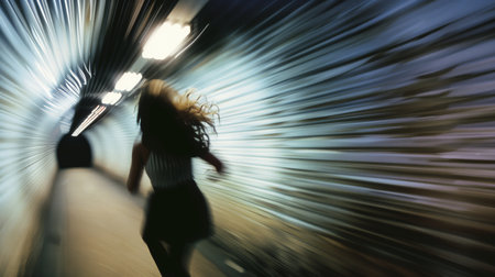 Blurry motion silhouette of a girl with long hair. ai generative.