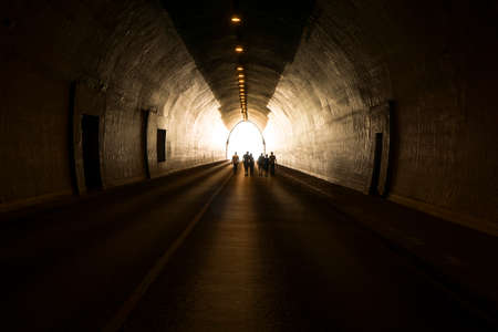 People walking in the tunnel in the light