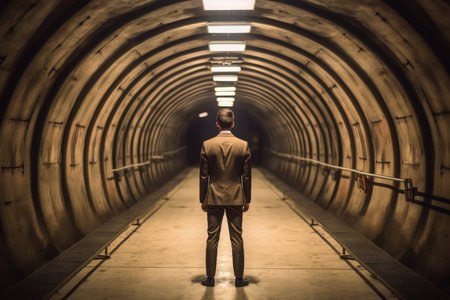 Tunnel light end man. Road concept. Generate Ai