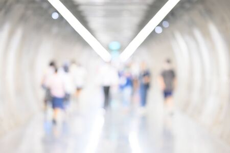 Blurred and defocused people walking in the passage