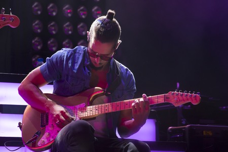 Guitarist playing live music on the stage