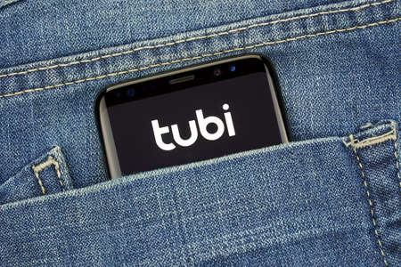 MONTREAL, CANADA - December 23, 2018: Tubi TV android app on Samsung s8 screen. Tubi is a free streaming service which provides more than 12,000 titles of movies and TV shows.