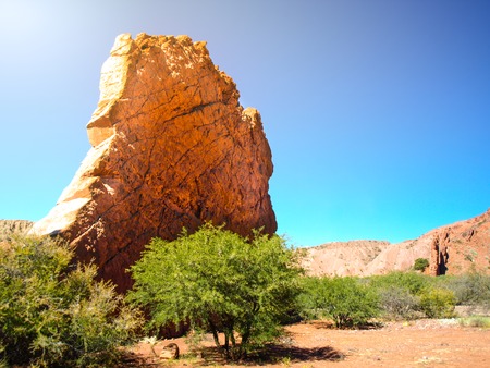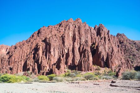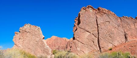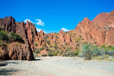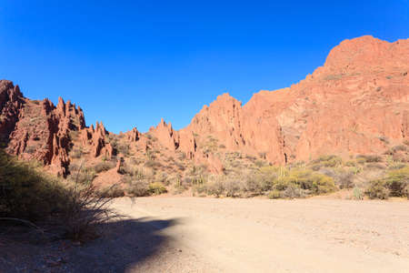 Red rock formations in the dry valley - quebrada - of western-like landscape near small town Tupiza in southern Bolivia