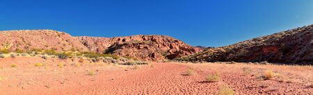 Red Cliffs National Conservation Area Wilderness and Snow Canyon State Park from the Elephant Arch and bone wash Trail by St George, Utah in desert reserve. United States. USA.