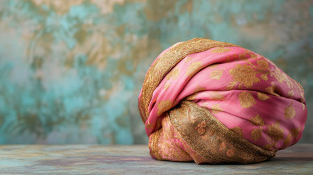 A beautifully arranged pink fabric with gold accents, showcasing intricate detail and vibrant colors, perfect for highlighting elegance and luxury in photography.