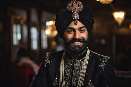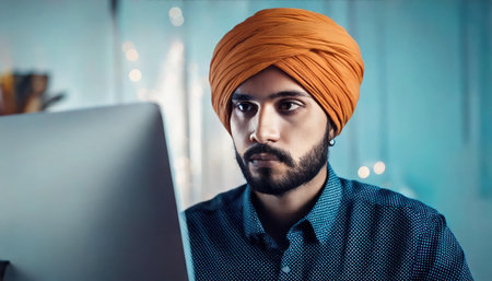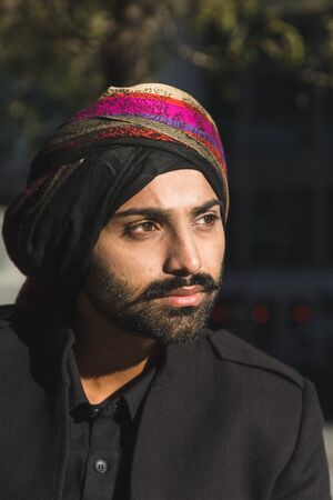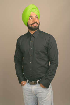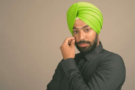Young bearded Indian Sikh man wearing turban