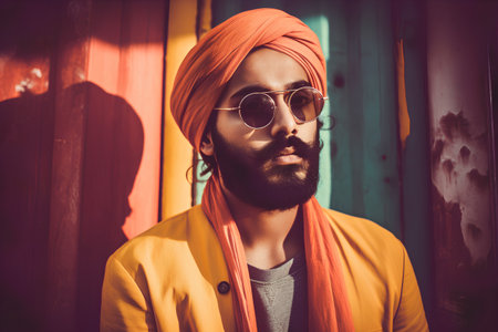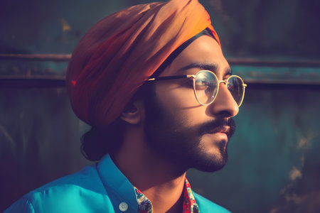 Portrait of a handsome Indian Sikh man in turban and glasses