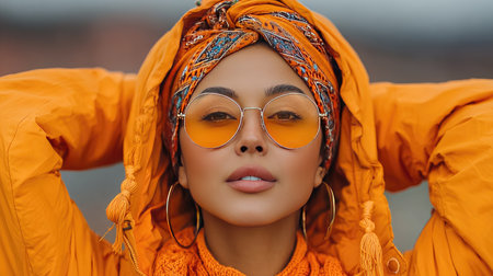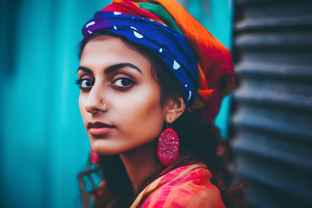 Portrait of a beautiful indian woman wearing a headscarf