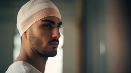 Portrait of a handsome young man with bandage on his head