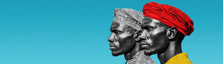 Vivid portrait of two men showcasing cultural heritage and traditional attire.