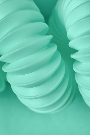 Closeup view of spiral corrugated tubing on mint background
