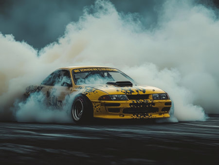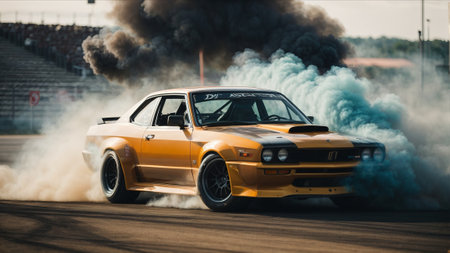 Adrenaline Rush: Capturing the Excitement of Car Drifting with Burning Tires on a Speed Track. Generative AI