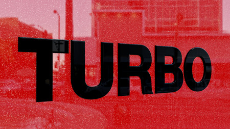 TURBO sign, label, badge, emblem or design element on car print. 3d render