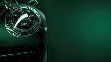 Night Reflection. New Black Car with Glowing Headlight, Detailing Modern Automotive Design