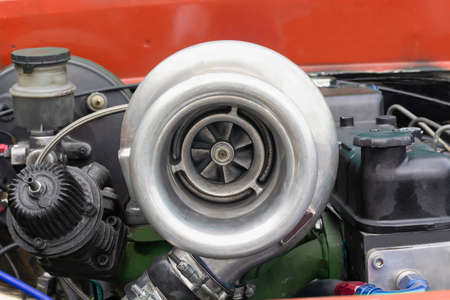 Belgorod , Russia - AUG, 18, 2018: Turbo charger on race car engine.