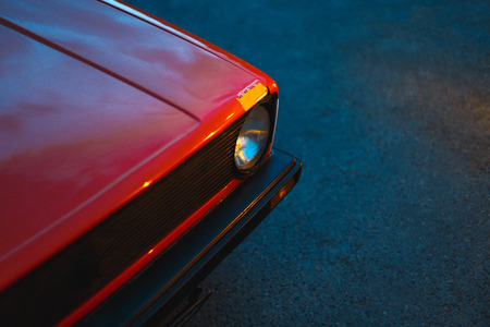 Closeup Shot Of A Head Lamps Of A Red Old Vintage Car