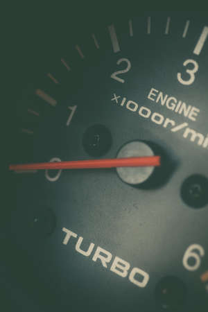 Close up shot of a car's turbo gauge.