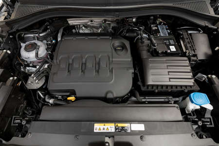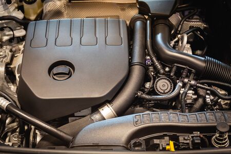 Close-up of the engine of a modern car. Conceptual image
