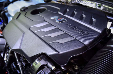 KUALA LUMPUR, MALAYSIA - DEC 3, 2019 : Close up of Hyundai i30 N engine displayed at Kuala Lumpur International Motor Show