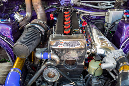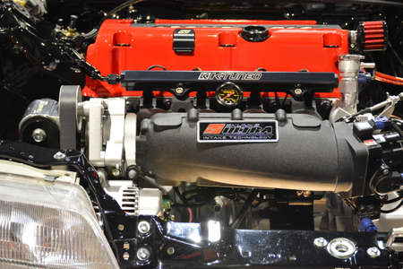PASAY, PH - DEC 8 - Honda civic motor engine at Bumper to Bumper car show on December 8, 2018 in Pasay, Philippines.