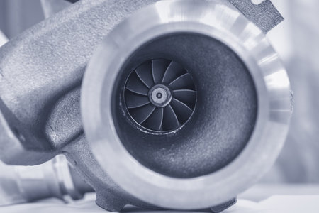 Close up shot of a car turbocharger.