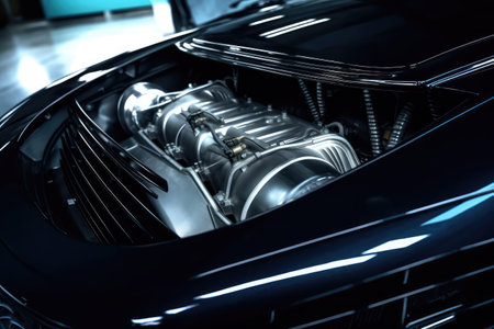 inside modern car hood engine professional photography AI Generated