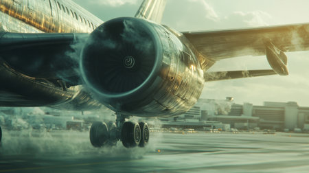This close-up shot captures the roaring engines of planes on the runway, showcasing the power and technology behind modern aviation. The dynamic scene highlights the excitement of air travel.
