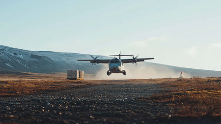 Remote cargo delivery: Aircraft landing in a remote area, highlighting the challenges and solutions of aerial logistics for isolated locations