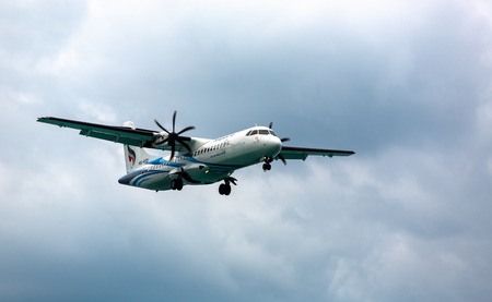 Aircraft ATP 72-600 in a stormy sky