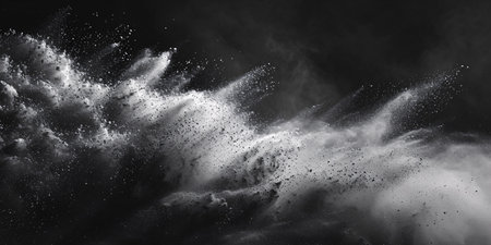 Organic dust particles drift in the air against a dark backdrop.