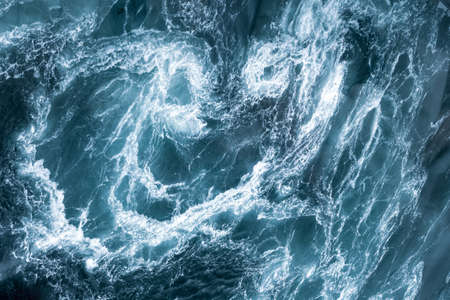 Aerial view of stormy sea water with splashes and foam