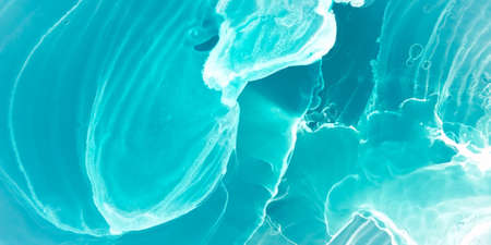 Turquoise marble texture. Abstract painting modern background. A mix of blue green and white shades, a work of art with acrylic paints. Smooth dynamic lines, fashionable design of postcards, posters