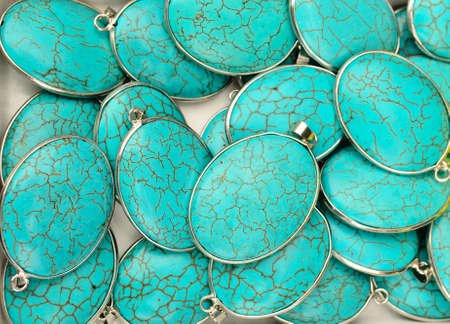 Stylish green turquoise necklace. Close up, details