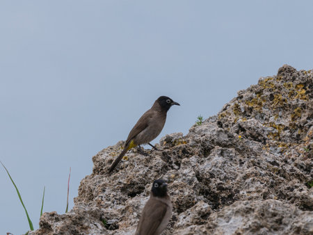 Image of Sooty-headed bulbul (Pycnonotus aurigaster) on a tree branch on nature background. Birds. Animal.