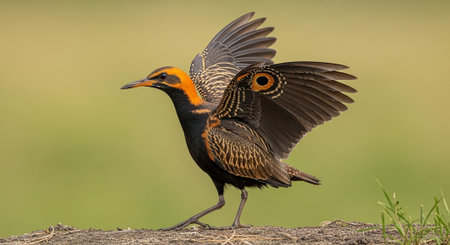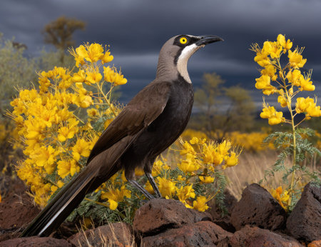 A beautiful yellow eye bird standing on the rocks of grasslands