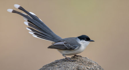 Elegant Ashy Drongo (Dicrurus leucophaeus) perches on a branch, its