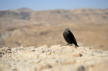 Birdwatching in Dana Biosphere Reserve in Jordan: Tristram's starling (Onychognathus tristramii, Tristramstar) in the rocky desert