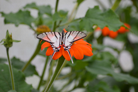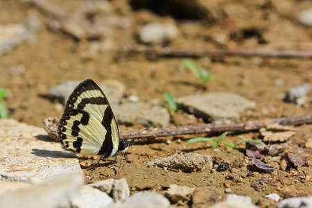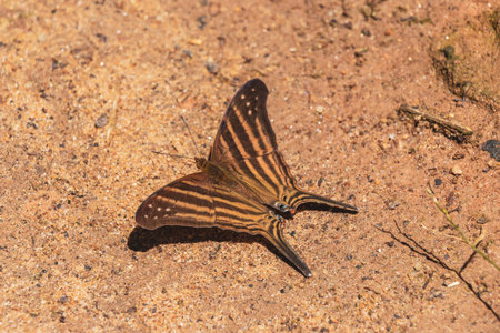Tropical brown black striped butterfly on the ground on Ilha Grande Big Island Angra dos Reis State of Rio de Janeiro Brazil.
