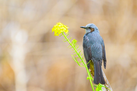 Brown-eared bulbul and Rape blossoms
