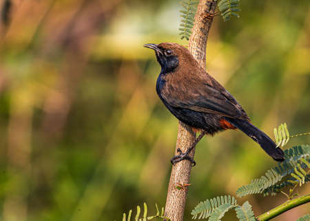 black-throated laughingthrush, Pterorhinus chinensis birds on the tree in the natural forest