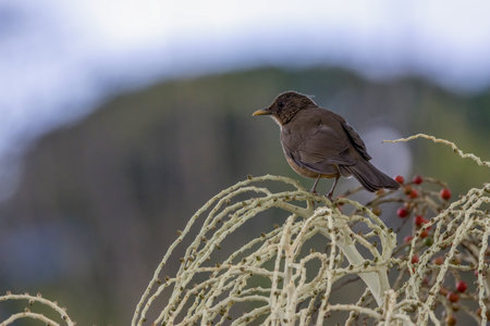 Magellan thrush Turdus falcklandii magellanicus. The Constitucion Square. Santiago de Chile. Chile.
